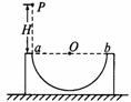 12.如图所示,固定在地面上的半圆轨道直径ab水平,质点P从a点正上方高H处自由下落,经过轨道后从b点冲出竖直上抛,上升的最大高度为2H/3,空气阻力不计.当质点下落再经过轨道a点冲出时,能上升的最大高度h为( )