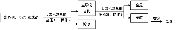 (2)兴趣小组的同学从实验室中收集一桶含有FeSO4、CuSO4的废液。他们想从中回收金属铜和硫酸亚铁晶体,设计了如下方案: