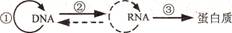 12、(09、18)下图为遗传学中的中心法则图解,图中①、②、③分别表示的过程是