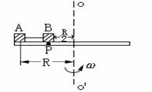18.如图所示,一转台可绕竖直轴OO’在水平面内转动,在边缘放一物体A,当角速度为ω0时,物A刚好被甩出转台,若在边缘和中心P放一与A完全相同的物B,并用线连接A、B、求:角速度为多大时两物块开始滑动?