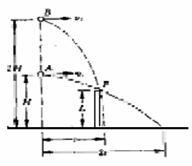 20.(附加题)从高为H的A点平抛出一个小球,其水平射程为2s,在A点的正上方高为2H处的B点,以相同方向水平抛出另一个小球,其水平射程为s,两球在空中飞行的轨道在同一竖直平面内,且都从同一堵墙的顶端擦过,如图所示。则此墙的高度L为多少?