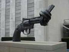 14.图3是耸立在联合国总部门前的一座雕塑。此雕塑反映出联合国的宗旨是