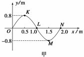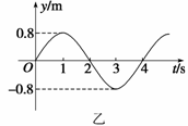解析 由图象看出振幅A=0.8 m,周期T=4 s;波向右传播,0时刻L质点向y轴正方向振动,所以图乙表示L质点的振动图象.