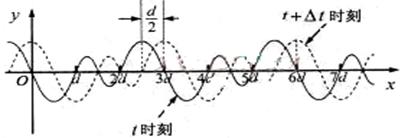 6.(上海市青浦区2009届高三上期期末) 如图所示,实线和虚线分别为某种波在t时刻和t+Δt时刻的波形曲线。B和C是横坐标分别为d和3d的两个质点,下列说法中正确的是:…………………………………………(1. BC )