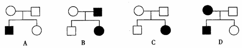 (08、16)下列有关人类遗传病的系谱图(图中深颜色表示患者)中,不可能表示人类红绿色盲遗传的是 C