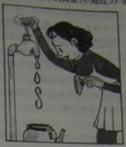 [解析]解答本题时读图要仔细,主要观察水龙头和家庭主妇的表现,通过现象,由表及里,揭示漫画的内涵。