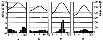 (3)下图四幅气候特征图中分别表示北京和松江的是 和 ,试比较两个城市的气候特征的差异,并简单分析原因。