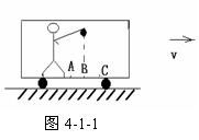 例6 正在行驶的火车车厢内,有一人相对车厢静止释放一小球(图4-1-1),则小球会落在:( )