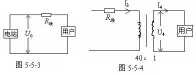(2)若采用高压输电,在发电机端用升压变压器,在用户端用降压变压器,且不计变压器和用户线路的损耗。已知用户变压器的降压比为40:1,当全部用户电灯正常发光时,输电线上损耗的功率多大?