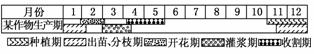 解析:农业生产中农作物的种植期的早晚、灌浆期的早晚、收割期的早晚均主要取决于农作物本身和当地的气候条件,读图可知该农作物的生产周期为6-7个月。
