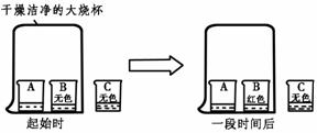 12.A、B、C三只小烧杯内依次盛有一定体积的浓氨水、酚酞溶液、酚酞溶液,按图所示进行探究活动,不能得到的结论是