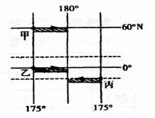 ( )14.甲、乙、丙三艘船同时出发驶向180°经线,而且同时到达,速度最快的是