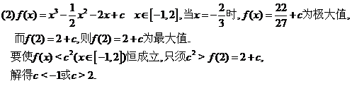 (2)若对x∈[-1,2],不等式f(x)<c2恒成立,求c的取值范围.