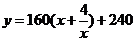 5、建造一个容积为8米3,深为2米的长方体无盖水池,如池底和池壁的造价分别为120元/米2和80元/米,则总造价与一底连长x的函数关系式为( )