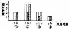 2、如图中1-4表示某哺乳动物(2N)在有性生殖过程中不同时期的细胞,图中的a、b、c分别表示某时期一个细胞中三种不同结构或物质的数量。下列说法正确的是( D )
