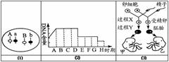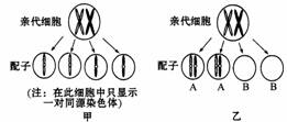 3、图甲显示在人类产生配子时的细胞减数分裂结果。