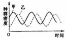5、(2008全国卷Ⅰ2)某水池有浮游动物和藻类两个种群,其种群密度随时间变化的趋势如图,若向水池中投放大量专食浮游动物的某种鱼(丙),一段时期后,该水池甲、乙、丙三个种群中公剩一个种群。下列关于该水池中上述三个种群关系及变化的叙述,正确的是( C )