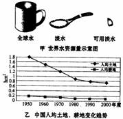 (3)导致可用淡水、人均耕地迅速减少的直接原因是人口数量的急剧增长。