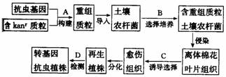 1、在培育转基因植物的研究中,卡那霉素抗性基因(kanr)常作为标记基因,只有含卡那霉素抗性基因的细胞才能在卡那霉素培养基上生长。如图为获得抗虫棉的技术流程。