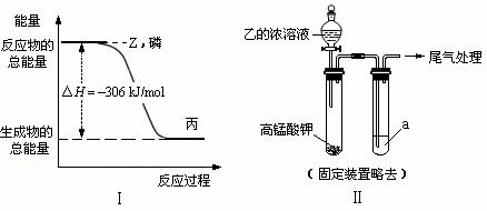 (2)磷在Z气体中燃烧可生成液态丙分子,也可生成固态丁分子。已知丙分子中各原子最外层均是8电子结构,丙的电子式是 。磷单质和Z单质反应生成1 mol丙时,反应过程与能量变化如图Ⅰ所示,该反应的热化学方程式是 。