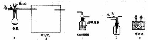 (4)实验开始前要先打开A装置中的活塞K1,持续通一段时问氮气后再关闭活塞K1,目的是 。A中的反应停止后,打开D中的活塞K2,并通人氧气,若反应中确有NO产生,则D中出现的现象是 。
