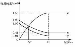 19.一定温度下,在2 L的密闭容器中,X、Y、Z三种气体的物质的量随时间变化的曲线如右图,下列描述正确的是( )