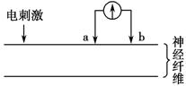 30、以枪乌贼的粗大神经纤维作材料,在神经纤维的表面放置两个相距2-3厘米的电极a和b,在图中的刺激点给予较强的电刺激(如图所示)。