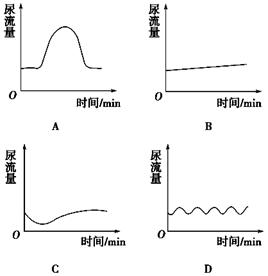 33、正常人若一次饮完1 000 mL清水后,立即测量尿流量。下列能正确表示从输尿管流出的尿流量随时间变化趋势的曲线是( )