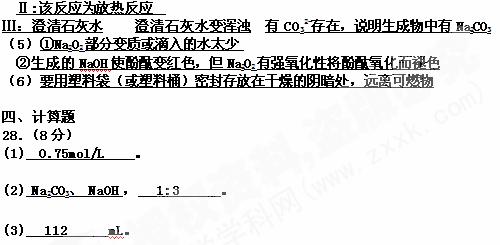 (3)Ⅰ:Na2O2过量(或CO2不足),瓶中CO2少O2多,Na2O2部分发生反应