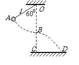 如图所示,让质量为0.5㎏小球从图中的A位置(细线与竖直方向的夹角为60O)由静止开始自由下摆,正好摆到最低点B位置时细线被拉断,设摆线长l=1.6m,悬点O到地面的竖直高度为H=6.6m,不计空气阻力,g=10m/s2求: