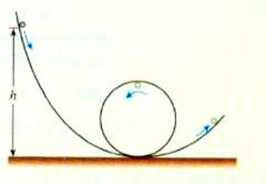 20. 游乐场的过山车可以底朝上在圆轨道上运行,游客却不会掉下来,我们把这种情况抽象为如图所示的模型:已知半径为R圆弧轨道,下端与竖直圆轨道相接,使小球从弧形轨道上端滚下,小球进入圆轨道下端后沿圆轨道运动。实验发现,只要h大于一定值,小球就可以顺利通过圆轨道的最高点.已知小球的质量为m.(不考虑空气及摩擦阻力)