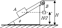 如图所示,斜面倾角θ=30°,另一边与地面垂直,高为H,斜面顶点有一定滑轮,物块A和B的质量分别为m1和m2,通过轻而软的细绳连结并跨过定滑轮,开始时两物块都位于与地面的垂直距离为H/2的位置上,释放两物块后,A沿斜面无摩擦地上滑,B沿斜面的竖直边下落,若物块A恰好能达到斜面的顶点,试求m1和m2的比值.(滑轮质量、半径及摩擦均可忽略)