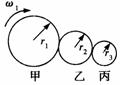 之间不打滑,其半径分别为r1、r2、r3.若甲轮的角速度为ω1,则丙轮的角速度为( )