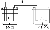 [例3]甲、乙两个容器中,分别加入0.1mol/LNaCl溶液与0.1mol/LAgNO3溶液后,以Pt为电极进行电解时,在A、B、C、D各电极上生成物的物质的量之比为:_____________