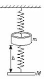 一轻质弹簧,上端悬挂于天花板,下端系一质量为M的平板,处在平衡状态.一质量为m的均匀环套在弹簧外,与平板的距离为h,如图所示,让环自由下落,撞击平板.已知碰后环与板以相同的速度向下运动,使弹簧伸长