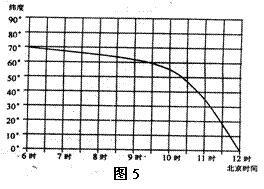 下图是南极科考队员在考察期间绘制的全球某日某时刻的晨线,线上数据表示纬度,据此回答5-6题