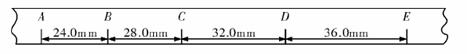 (4分)如图是用打点计时器打出一系列点的纸带,纸带固定在一个做匀加速直线运动的小车后面,A、B、C、D、E为选好的计数点.相邻计数点间的时间间隔为0.04s.由图上数据可从纸带上求出小车在运动中的加速度a=