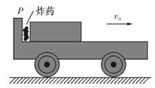 向右运动,车左端有一固定挡板P,挡板和车的质量为M=16kg,在挡板P和质量为M=9kg的木块之间有少量炸药,炸药爆炸提供给小车和木块的总机械能为E0=1800J.若要使炸药爆炸后木块的动能等于E0,在爆炸前小车的速度
