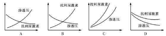 19.为保持内环境的稳态,当人一次饮水过多时,要通过相关调节维持体内水分平衡。下列能表示调节过程血液中抗利尿激素和渗透压变化的曲线是(纵轴表示激素和渗透压的变化程度,横轴表示调节的时间) ( )