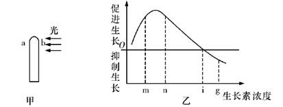 23.如下图所示,甲图表示胚芽鞘受到单侧光的照射,乙图表示不同浓度生长素溶液对胚芽鞘生长的影响,如果甲图中b处的生长素浓度为m,则a处生长素浓度X的范围是