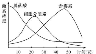 某种植物种子经低温处理1~2个月后能够提早萌发。在低温处理过程中,种子内的激素含量变化如图所示。下列有关推断错误的是 ( )