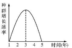 25.下图表示某种兔迁入新的环境后种群增长速率随时间的变化曲线。第3年时用标志重捕法调查该兔种群的密度,第一次捕获50只全部标志后释放,一个月后进行第二次捕捉,共捕获未标志的60只,标志的20只。估算该兔种群在这一环境中的K值是 ( )
