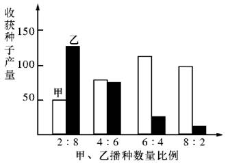 26.在人为控制条件下将生态和生理特性十分相似的两种农作物(甲和乙)按不同比例混种在一起,收集种子并对实验数据处理后,得到如右图结果。下列说法错误的是( )