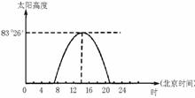 14.一同学在北半球某地图示时间内,利用日影测量当地经纬度,当竖直的竹竿影子朝正北时,正好是北京时间12:20,日影与竹竿等长,则该地的地理坐标是 ( )