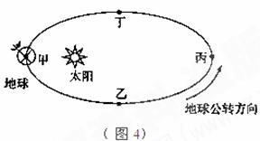 4.下表所列的是12月22日甲、乙、丙、丁四地的白昼时间,根据表中数据判断,位于南