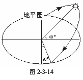 图2-3-14为北半球中纬度某地某日的太阳运动路径,此地的纬度是