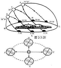 下图为某地24小时观测太阳路径图(图2-3-13),此地