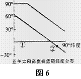 读正午太阳高度极值的纬度分布图(图6),完成3-4题。