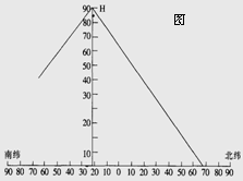 30.读某日正午太阳高度纬度分布图(图2-3-19),回答下列问题。