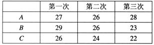 12.测定个人的反应时间,按图所示,请你的同学用手指拿着一把长30 cm的直尺,他的手抓在28cm处,你的手候在2cm处,当他松开直尺,你见到直尺向下落时,立即用手抓住直尺,记录抓住处刻度对应的数据,重复以上步骤多次。现有A、 B、C三位同学相互测定反应速度得到的数据如下表(单位:cm,g=10m/s2)